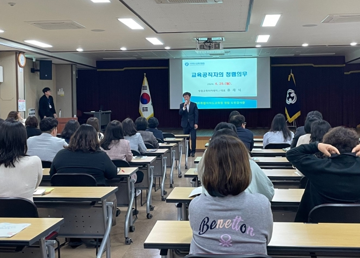 ‘교육공직자의 청렴의무’이라는 주제로 ▲2023년 부패인식지수 추이 및 공공기관 종합청렴도 결과 설명 ▲공직자의 부패행위 사례 공유 ▲청탁금지법 및 공무원 행동강령에 대한 이해 등 반부패인식을 고취시키기 위한 교육으로 진행됐다.