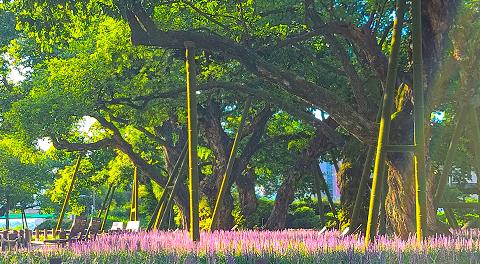 아침 햇살이 스며들며 개화가 한창인 보랏빛 맥문동 꽃과 노거수 왕버들이 이색적인 자연을 모습을 그리며 관광객뿐만 아니라 전국에서 출사의 발걸음이 이어지고 있다.