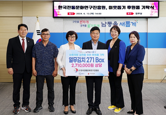 이번 전달식은 (사)한국전통문화연구진흥원 임원진들과 남동구 의회 사회도시위원회 전용호 의원이 함께 참석했으며, 계절 김치는 인천사회복지공동모금회를 통해 남동구 내 취약계층 및 사회복지시설에 지원됐다.