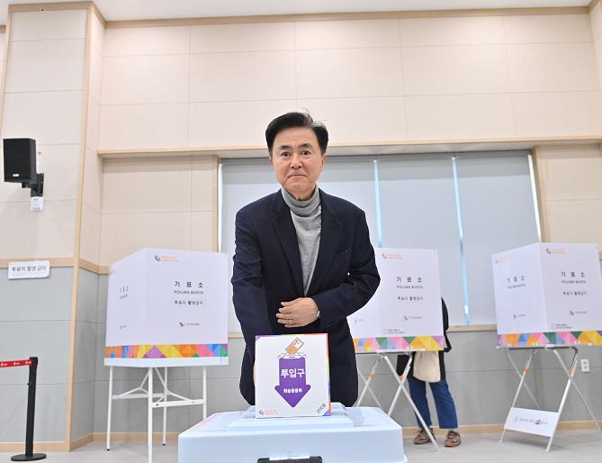 김 지사는 이날 투표소에서 본인 확인을 거쳐 한 표를 행사한 뒤, 종사자 등을 격려하며 대한민국의 50년, 100년 미래를 위해 유권자 모두가 소중한 권리를 행사해 달라는 뜻을 전했다.