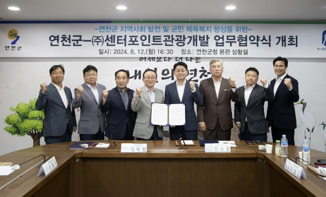 [뉴스서울] 연천군과 ㈜센터포인트관광개발은 지난 12일 연천군청 본관 2층 상황실에서 지역사회 발전 및 군민 체육 복지 향상을 위한 업무협약을 체결했다고 밝혔다.