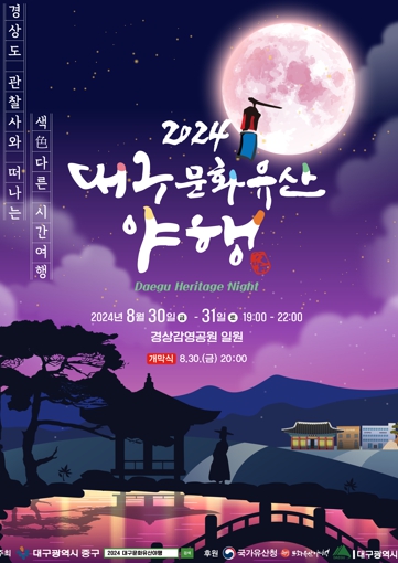[뉴스서울] 대구 중구는 30일 오후 8시 개막식을 시작으로 31일까지 경상감영공원(경상감영길 99) 일원에서 420여 년 전 경상감영의 모습을 재현한 ‘2024 대구문화유산 야행’을 개최한다고 밝혔다.