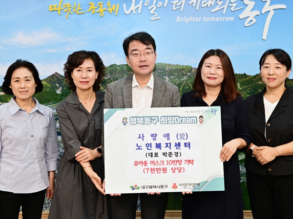 [뉴스서울] 사랑애(愛) 노인복지센터는 지난 28일 동구청을 방문, 어려운 이웃을 위해 사용해달라며 유아용 마스크 10만장(7천만원 상당)을 기탁했다.