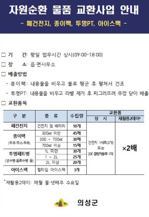 | ▲ 의성군, 교환물품 2배로 받는 ‘재활용2데이’ 운영 |