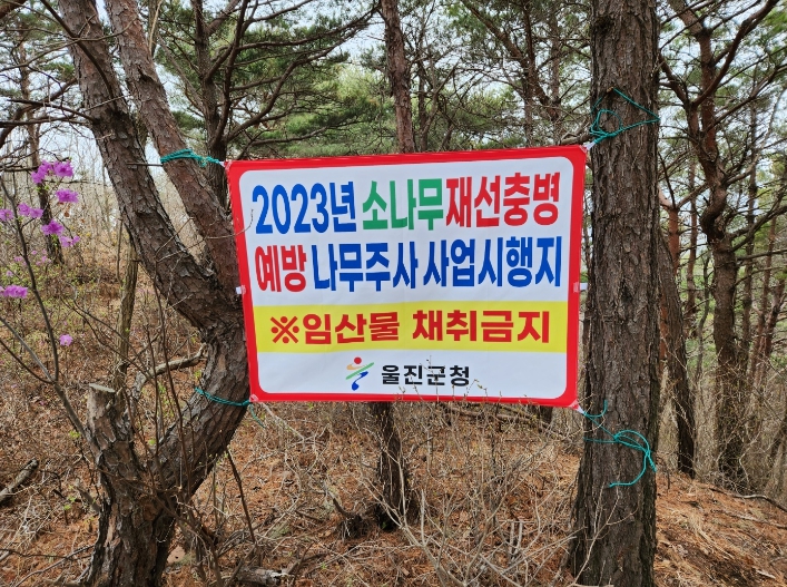 울진군은 소나무 재선충병 청정지역 유지를 위하여 온정면 조금리 산65번지 일원에 81ha 대상으로 예방 나무주사를 실시할 예정이며, 재선충 의심목 조기발견을 위하여 산림병해충예찰단 운영 및 드론 예찰을 수시로 시행할 계획이다.