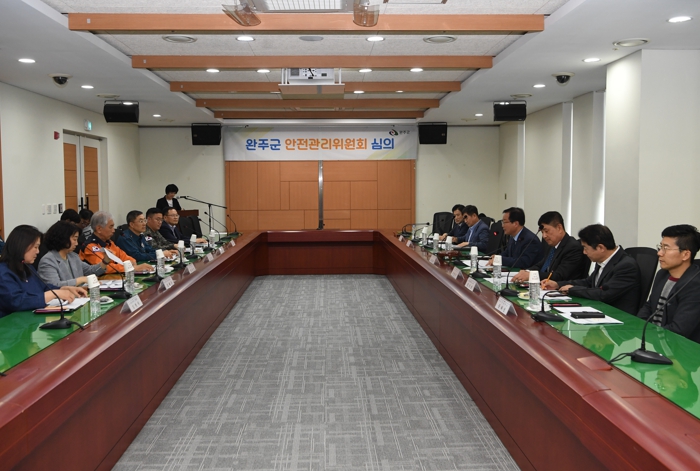 지난 26일 완주군은 유희태 군수의 주재하에 김재천 완주군의회 의원, 김효진 완주경찰서장, 송성일 완주소방서 대응예방과장, 김혜은 완주교육지원청 행정지원과장, 허광부 제9585부대 2대대 정작처장, 조성만 한국전기안전공사 전북지역본부장, 공하성 우석대학교 소방방재학과 교수, 정기성 원광대학교 소방행정학과 교수, 박용규 소망건축사 대표, 김현숙 의용소방대연합회 대장 등 12명이 참석한 가운데 안전관리 위원회를 열었다.