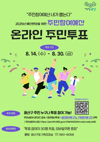 [뉴스서울] 광주 광산구는 2025년 주민참여예산 사업 선정을 위한 ‘온라인 주민투표’를 실시한다고 14일 밝혔다.