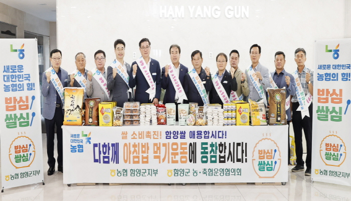 [뉴스서울] 농협 함양군지부와 관내 농축협, 함양군은 29일 오전 함양군청에서 함양 쌀 소비촉진을 위한 ‘가족과 함께 아침밥 먹기 캠페인’을 전개했다.