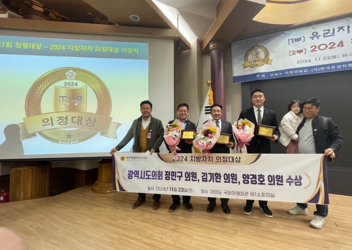▲ 제주도의회 환경도시위원회 김기환ㆍ양경호ㆍ정민구 의원 '2024 지방자치 의정대상' 수상 |