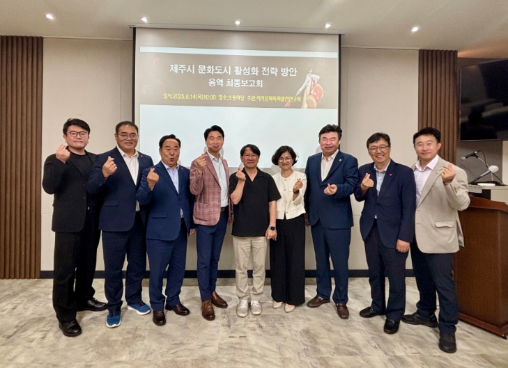 [뉴스서울] 제주특별자치도의회 의원연구단체 ‘지역문화특화발전연구회’ 강경문(국민의힘, 비례대표) 대표의원은 2025년 8월 14일 제주특별자치도의회 소통마당에서 제주시 문화도시 활성화 전략 방안에 대한 최종용역보고회를 가졌다고 밝혔다.
