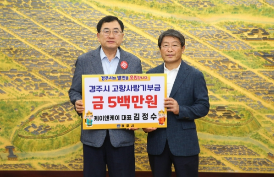 경주시는 김정수 케이앤케이 대표가 경주시청을 찾아 고향사랑기부금 최고 한도액인 500만원을 맡겨 2024년도 경주시 고액기부자 8호에 이름을 올렸다고 14일 밝혔다.