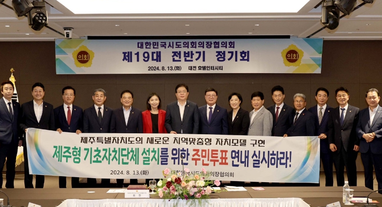 [뉴스서울] 대한민국시도의회의장협의회에서는 8월 13일, 대전 호텔인터시티에서 2024년 정기회를 개최하고'제주형 기초자치단체 설치를 위한 주민투표 실시 촉구 건의안'을 공식 안건으로 채택하여 소관 부처인 행정안전부에 건의키로 했다.