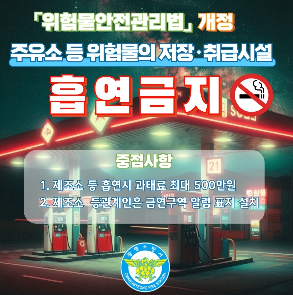 | ▲ 광명소방서, 위험물안전관리법 개정! 위험물시설 내 '흡연금지' 당부 |