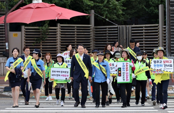 김찬진 청장은 서림초 주변 통학로에서 인천남부교육지원청, 송림지구대, 중부모범운전자회, 인천동부 녹색어머니회, 서림초등학교 학부모회 등 유관기관과 합동으로‘어린이 통학로 교통안전 캠페인’을 진행했다.