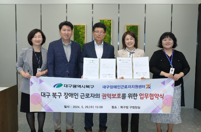 [뉴스서울] 대구 북구청은 5월 29일 수요일 장애인 근로자의 권익 보호와 복지증진을 도모하기 위해 ‘대구장애인근로자지원센터’와 업무협약을 체결했다.