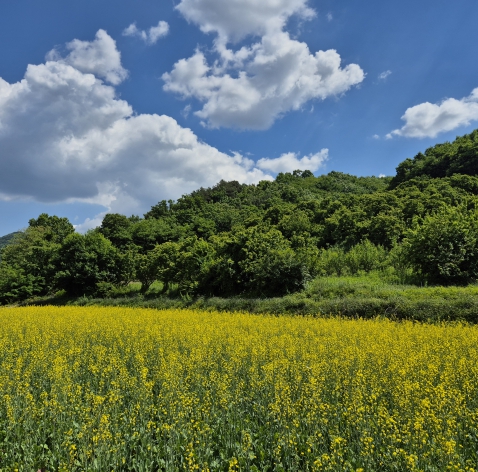 올해 초 집중호우 및 냉해로 인한 작물 생육 불량에도 불구하고 재파종, 추가 시비 등의 노력으로 현재와 같은 유채꽃 경관을 일궈내었다.