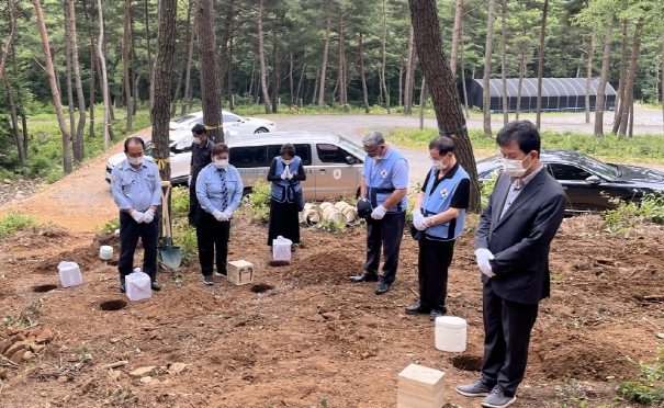 [뉴스서울] 서천군이 무연고 사망자의 존엄성 유지를 위한 사업의 일환으로 공설봉안당(영명각)에 안치돼 기간이 종료된 무연고 사망자의 유골 36기를 보령시에 위치한 국립기억의숲 수목장에 안치했다.
