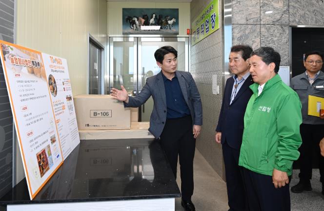 [뉴스서울] 김천시는 지난 29일, 남성현 산림청장이 임업 분야 투자 활성화와 규제개선 과제를 발굴하기 위해 김천시산림조합과 호두 가공업체를 방문했다고 밝혔다.