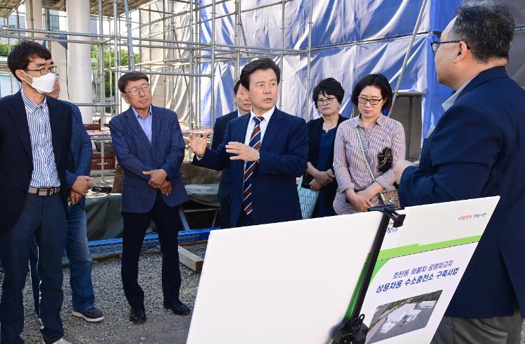 이번에 구축 중인 수소충전소는 2022년 환경부 상용차용 수소충전소 구축 공모사업에 선정되어 수소충전소 설치·운영 전문기업인 코하이젠(주)에서 호탄동 화물차 공영차고지에 구축 추진하고 있으며, 국비 42억 민간자본 38억 총 80억원을 투자하여 2023년 1월에 착공, 오는 8월에 준공 예정이다.