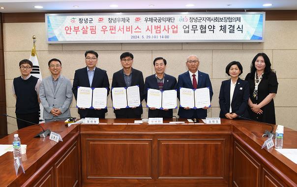 [뉴스서울] 창녕군은 지난 29일, 관내 복지 사각지대 발굴과 지원에 협력하기 위해 창녕우체국 및 우체국공익재단, 창녕군지역사회보장협의체와 ‘안부살핌 우편서비스 사업’ 업무협약을 체결했다.