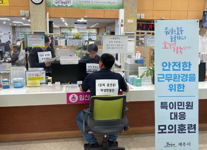 [뉴스서울] 제주시는 29일 안전한 민원실 환경조성을 위한‘특이민원 대응 모의훈련’을 실시했다.