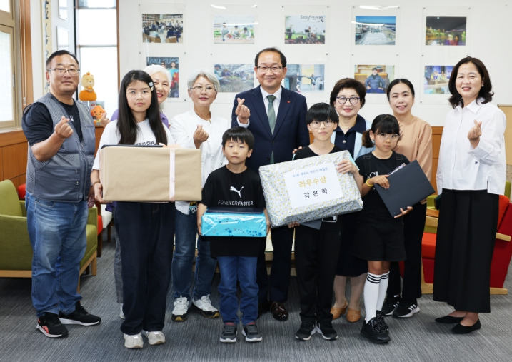 [뉴스서울] 강병삼 제주시장은 29일 집무실에서 '제3회 지역아동센터 어린이 백일장' 최우수작으로 선정된 어린이 4명에게 상장을 수여했다.