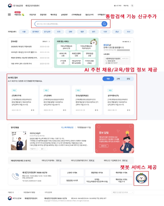 [뉴스서울] 중·장기복무 제대군인들에게 취·창업 관련 각종 정보와 취업추천, 교육훈련 등을 체계적으로 지원하기 위한 제대군인 전직지원시스템이 인공지능(AI) 기반 시스템으로 고도화되어 15일부터 운영된다.