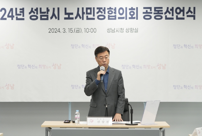 [뉴스서울] 성남시는 15일 오전 10시 시청 상황실에서 2024년 성남시 노사민정협의회 회의를 열어 상생형 일자리 구축과 지속가능한 ESG도시 성남을 위한 노사민정 공동선언을 발표했다.