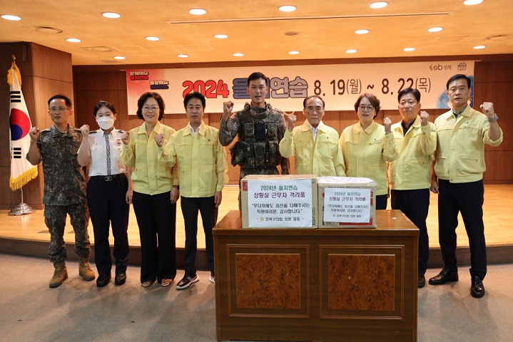 성북구의회 임태근 의장과 정기혁 부의장을 비롯한 상임위원장단은 20일‘2024년 을지연습’훈련을 진행하는 성북구청 상황실을 방문하여 훈련 상황을 보고받은 후 관계자들을 독려하고 격려품을 전달했다.