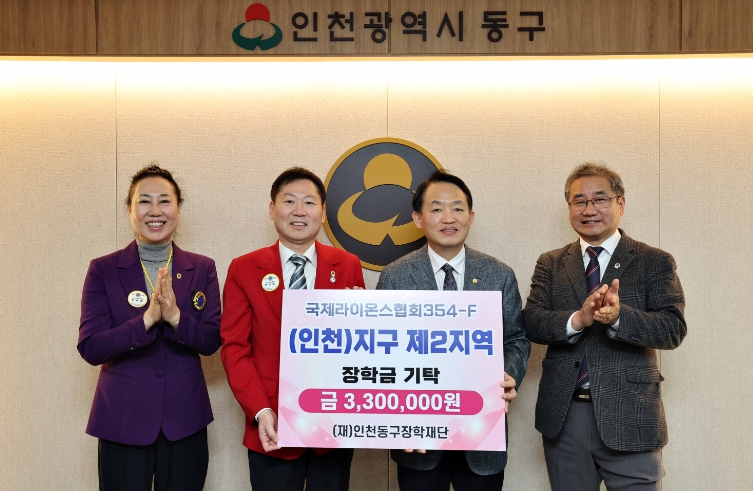 [뉴스서울] 국제라이온스협회 354-F(인천)지구 제2지역(부총재 한상일)은 지난 14일 재단법인 인천동구장학재단에 장학금 330만원을 기탁했다고 밝혔다.