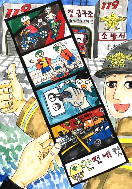 '나의 ‘안전네컷’을 소개합니다'라는 작품명으로 자전거 사고, 물놀이 사고 등 4가지 주제를 하나의 그림으로 담아 표현해 심사위원의 눈길을 끌었으며 경기도 내 각 소방서별로 선정된 최우수작 34점을 대상으로 심사를 진행, 송민호 어린이의 작품에 우수상을 안겨주었다.