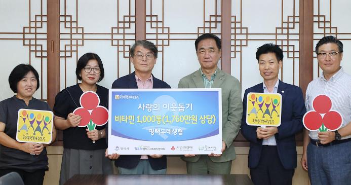 [뉴스서울] 예비사회적기업 평택두레소비자생활협동조합이 지난 22일 평택시청 대외협력실에서 열린 사랑의 이웃돕기 전달식을 통해 1760만 원 상당의 비타민 1000통을 기부했다.