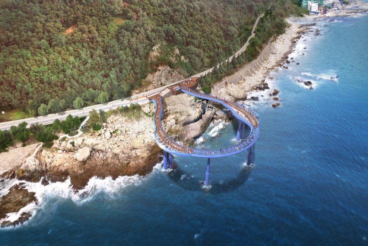 청사포 다릿돌 전망대를 기존 일자형에서 U자형으로 확장하고, 길이 137m, 폭 3m 규모‘해월전망대’를 새롭게 조성한다.