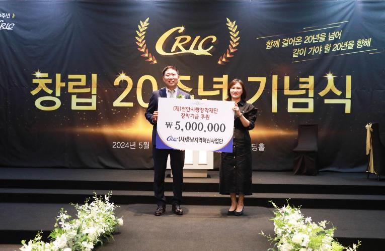 [뉴스서울] (사)충남지역혁신사업단는 지난 30일 천안 S컨벤션웨딩홀에서 열린 창립 20주년 기념식에서 지역인재 육성 및 어려운 학생들을 위해 장학기금 500만 원을 (재)천안사랑장학재단에 기탁했다고 밝혔다.
