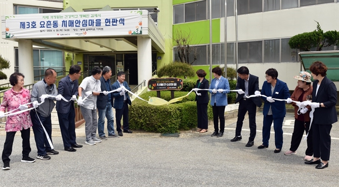 [뉴스서울] 김제시 치매안심센터는 1일, 부영 실버타운 아파트 입구에서 신풍 월성동, 검산주공아파트에 이어 제3호 요촌 하동 수각, 실버타운 마을을 치매안심마을로 지정했음을 알리는 현판식 행사를 개최했다고 밝혔다.