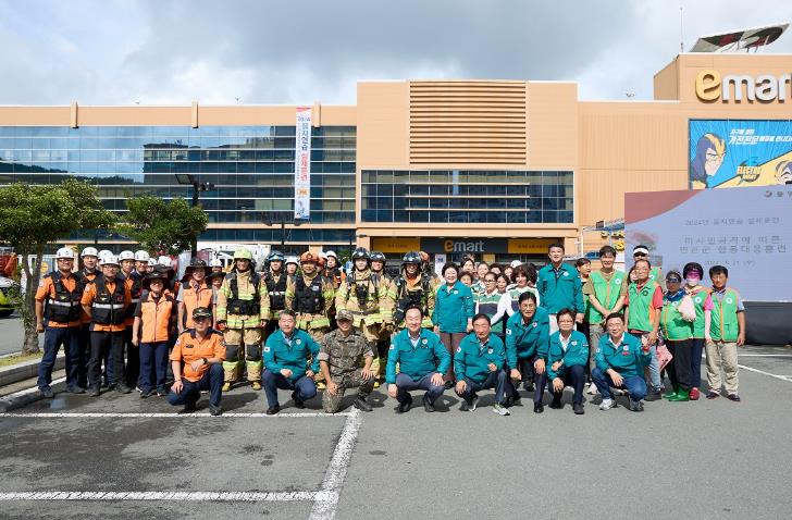 이날 훈련에는 통영시, E마트, 통영소방서, 통영경찰서, 8358부대 제 2대대, 한국전력공사 통영지사, 여성민방위기동대, 참관인 등 9개 기관단체와 400여명이 참여해실전 같은 시범훈련을 선보였다.