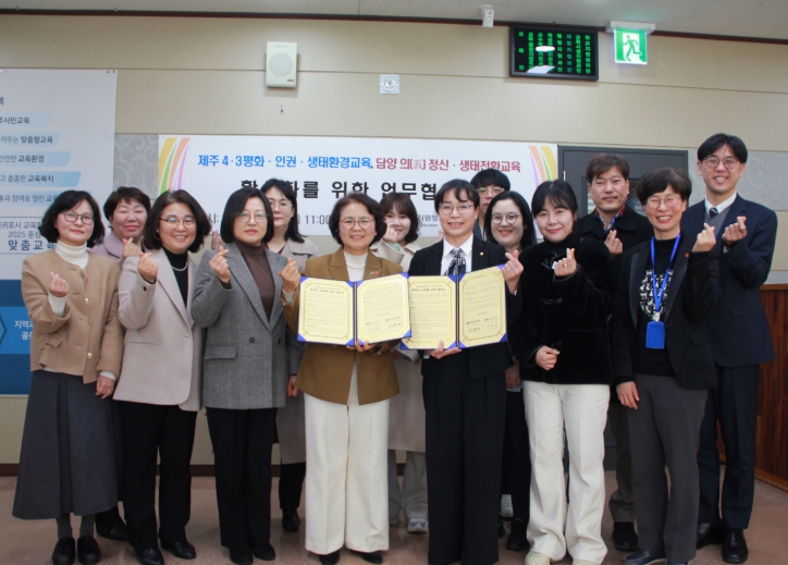 [뉴스서울] 서귀포시교육지원청은 26일 전라남도 담양교육지원청과 제주4·3평화·인권·생태환경교육과 담양 의(義) 정신·생태전환교육 활성화를 위한 업무협약을 체결했다.