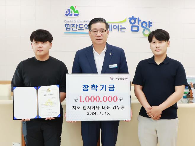 ▲ 함양 지호 합자회사 김두홍 대표 장학금 100만 원 기탁 |