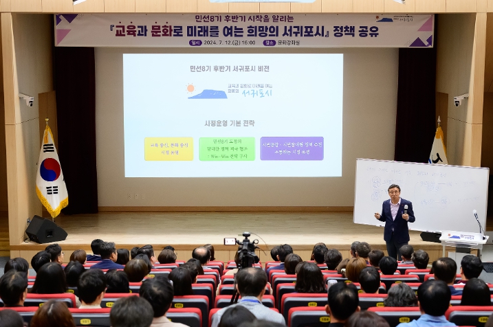 [뉴스서울] 서귀포시는 12일 서귀포시청 문화강좌실에서 직원 200여 명이 참석한 가운데 서귀포시 시정 운영 비전과 전략 공유의 자리를 가졌다.