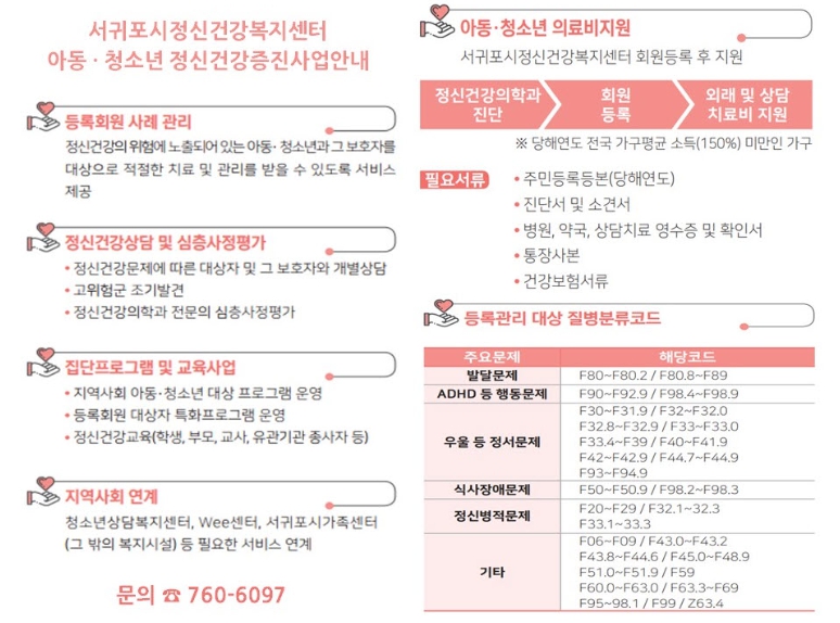 또한, 정신질환 조기 발견 ‣ 제때 치료 ‣ 빠른 회복을 위해 아동·청소년을 대상으로 정신건강 검진비 및 의료비도 지원하고 있다.