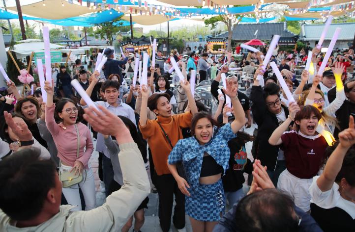 오후 7시부터 8시까지 EDM DJ 파티는 불금불파의 백미로 국내 관광객은 물론 외국인 관광객들 역시 무대 앞으로 나와 신나는 댄스 타임을 가지는 등 높은 호응을 이끌어 냈다.