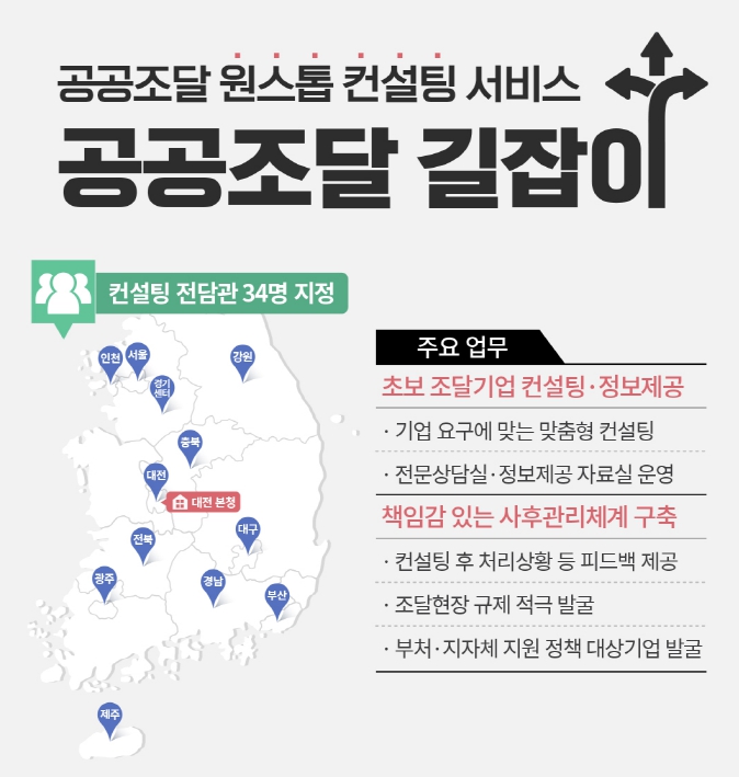 조달청은 13일 대전정부청사에서 ‘공공조달 길잡이’ 발대식을 개최하고, 공공조달 원스톱 컨설팅 서비스를 본격 제공한다고 밝혔다.