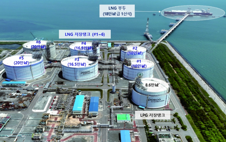이번에 준공된 광양 제1 LNG터미널은 포스코인터내셔널이 2002년부터 약 22년간 1조 450억 원을 투자하여 건설했다. 민간기업 터미널로는 최초로 건설되기 시작한 이 터미널은 LNG 저장탱크 6기(용량 93만㎘)와 시간당 680톤의 기화송출설비를 갖추고 있으며 180천㎥ 급 LNG 운반선을 접안할 수 있는 항만설비도 갖추었다.