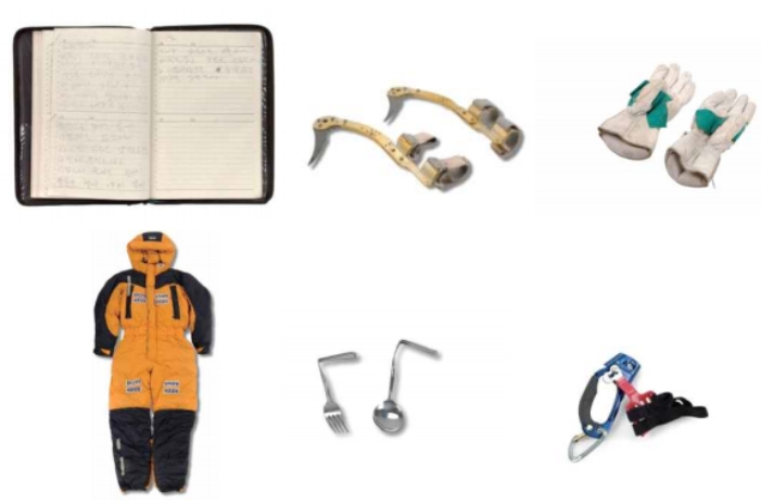 | ▲ 산악인 김홍빈 등반 자료(일지, 특수제작 장비, 의복, 도구 등) |
