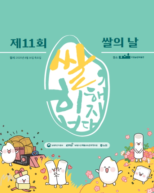 [뉴스서울] 농림축산식품부는 오는 8월 18일 제11회 쌀의 날을 맞아 쌀의 우수성을 알리고 쌀 중심의 식습관 확산과 쌀 소비 활성화를 위해 8월 14일에 수원 국립농업박물관에서 기념행사를 진행한다.