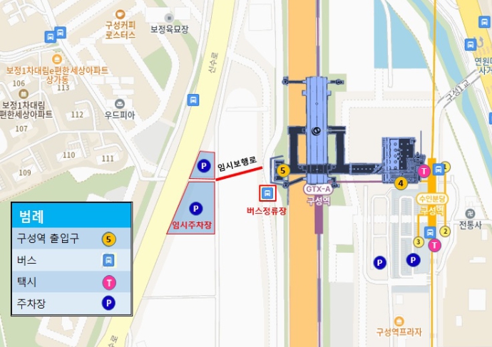아울러, GTX-A 구성역 인근 용인플랫폼시티 도시개발사업부지를 활용하여 서측 출입구 이용객을 위한 임시주차장(82면), 보행로도 함께 조성한다.