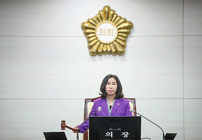| ▲ 제230회 임시회 제1차 본회의 의사봉 타봉 하는 김경희 의장 모습 |