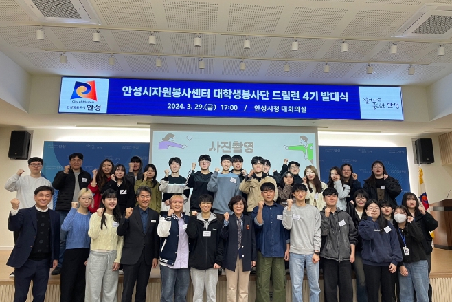[뉴스서울] 안성시자원봉사센터는 지난 2024년 3월 29일 안성시청 대회의실에서 대학생봉사단 드림런 4기 발대식을 개최했다. 이날, 발대식에는 안성시청 김보라 시장을 포함한 드림런 4기 참여자 38명이 함께하여 ‘주체자로의 발돋움’이라는 주제로 활동할 계획을 밝혔다.
