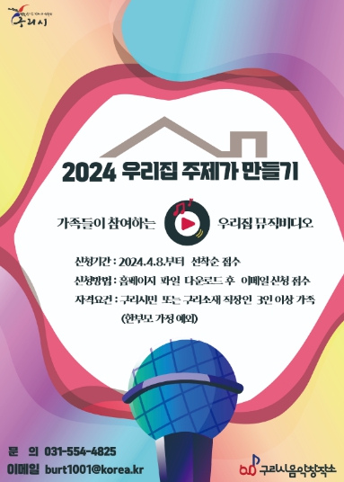 백경현 구리시장은 “행복의 시작은 가정에서부터라는 말이 있듯이, 이번 가족 주제가 만들기를 통해 가족의 중요성을 다시 한번 느끼고 더욱 화목한 가정이 많아지기를 기대한다.”라고 전했다.