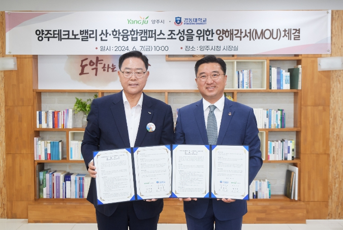 [뉴스서울] 양주시는 7일 오전 시장실에서 경동대학교와 양주테크노밸리 활성화를 위한 ‘경동대학교 산학융합지구(산·학·연 융합 캠퍼스) 조성에 관한 양해각서(MOU)’를 체결했다고 밝혔다.
